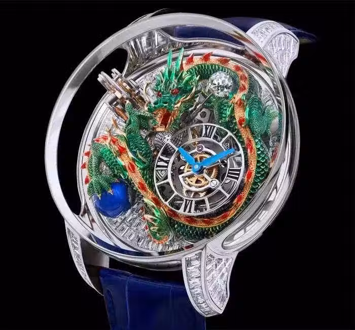 神話中的龍是一種宏偉的生物,代表著力量與權力、榮耀與吉祥。18K 玫瑰金龍的創作結合了高科技與舊世界的工匠技藝。它從詳細的繪圖開始。從這個渲染圖來看,18K玫瑰金鑄件就做好了。光是這個過程就需要兩個多月。然後工匠又花了三個月時間手工雕刻龍的細節。每個表面都經過雕刻、雕刻和拋光。另一位工匠耗時約40小時,用綠色、紅色和金色丙烯顏料手工繪制 18K 玫瑰金鑄件。