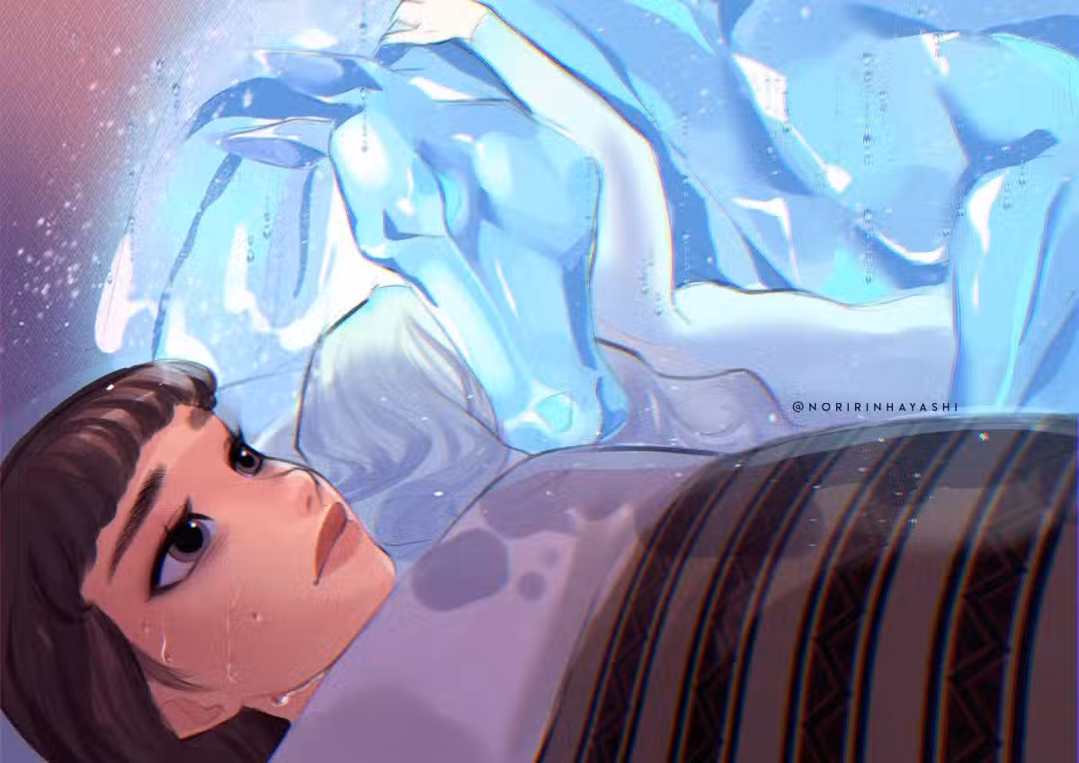 先來看這個《冰雪奇緣2》的梗,一臉悲傷的安娜,旁邊是熟睡的艾莎以及……水之元素的冰馬,黑暗之海的守護者,感覺這個屋子濕度會很高吧,看安娜的被子就能看出來了,潮乎乎的一大片。
