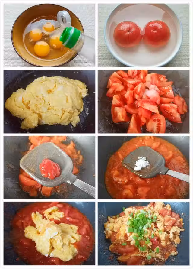 5、等湯汁出來了,加半勺番茄醬,繼續翻炒、加半勺白糖提鮮,繼續翻炒。