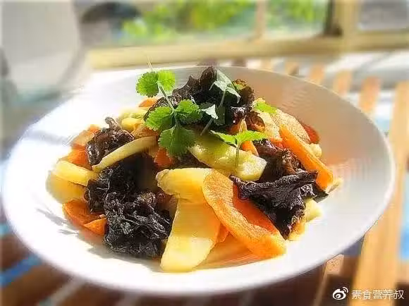 材料:黑木耳,紅蘿蔔,土豆,橄欖油,鹽,白糖,蔬果調味粉,胡椒粉
