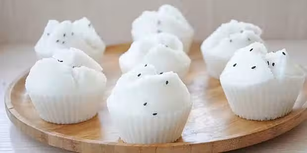 1.攪拌:將米發糕和水攪拌到沒有顆粒,變得順滑,很像蛋糕糊的感覺。