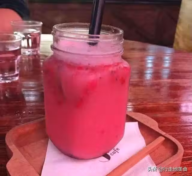 原料:紅心火龍果、養樂多、冰塊、蜂蜜或糖漿