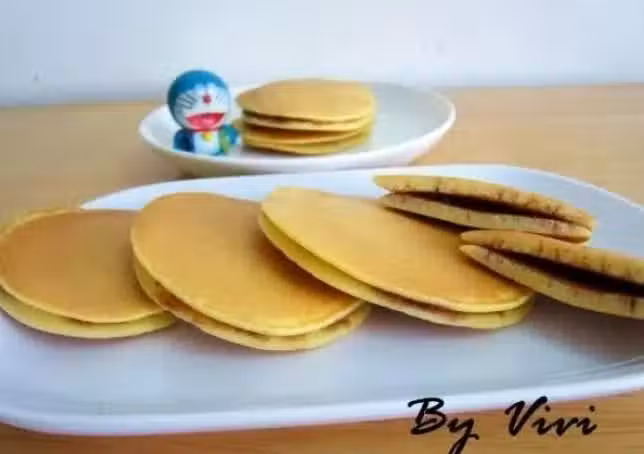 5)然後平底不粘鍋預熱後(小火),不必放油,麵煳用湯匙攪拌均,舀起一湯匙滿的麵煳,慢慢的放入鍋裡,當麵煳表面出現泡泡後,就可以翻另一面在煎一下就可以起鍋了,不用太久,以免焦了。