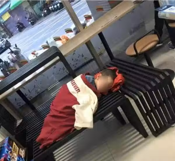 爸爸店外施工,小孩便利店長椅熟睡,店員暖心蓋制服「我也是這樣長大的」一張圖感動上萬網友:酸了鼻子