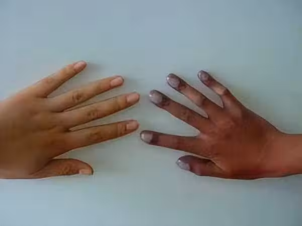 在某種程度上分析,可以把手部和腳部的異常當成是病變的先兆。如果手指末端有增生情況,表現的肥大且像一個「棒槌」,那麼除了考慮風濕性關節炎的可能性以外,肺部的健康則更需要注意。
