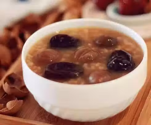 功效:此粥適宜夜眠不穩、精神不寧、意志不集中、多汗等,可調和經絡、和顏潤色。紅棗對促進血液循環,和桂圓一起具有極佳的補血養氣效果!