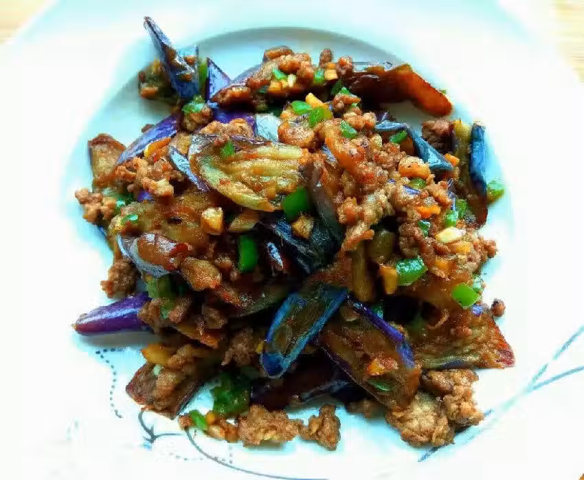 長茄子3根,肉沫100克,蔥2根,蒜4瓣,醬油35毫升,料酒40毫升,米醋25毫升,水澱粉適量。