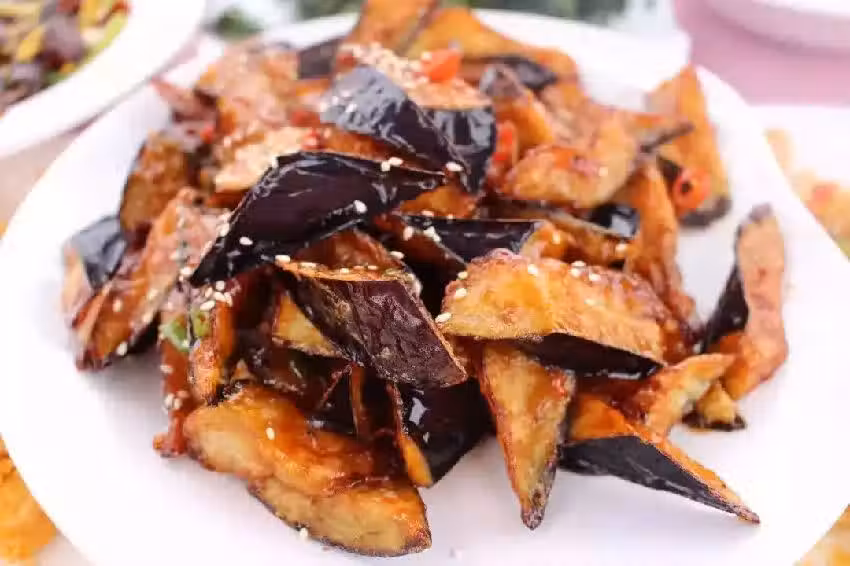 茄子1個,油3勺,麵粉10克,雞蛋1個,澱粉適量,番茄醬4勺,白糖2小勺,白醋1勺,雞精半勺,鹽半勺。