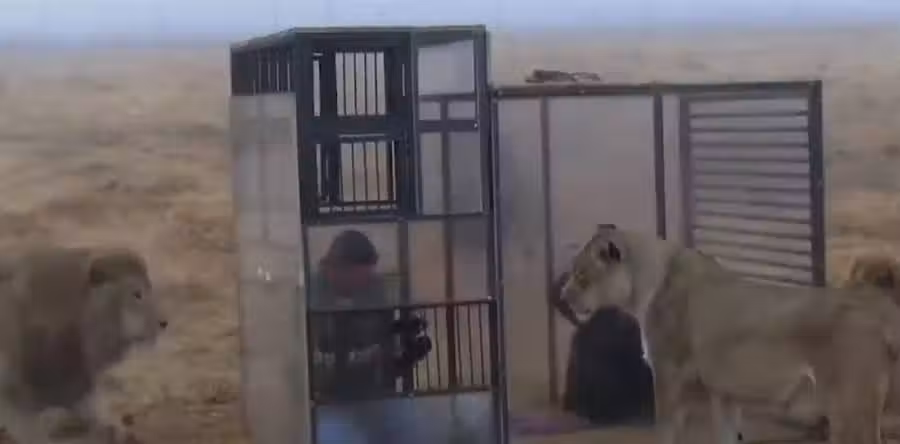 把人關進「玻璃籠子」里,周圍全是獅子,獅子們會做出什麼反應?