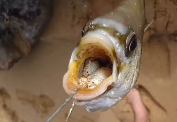 一外國男子從外釣魚回家,發現一條魚嘴裡竟塞著滿滿一腔白色小蟲。這些小蟲看起來只有小指頭般大小,一雙小眼睛亮的發光。