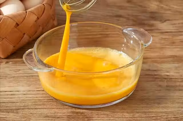 2、不過就是有一點,放冷水還是放熱水呢?這兩者區別很大,正確方法應該是,放入溫開水,這是第一招。水量和蛋液的比例,是1:1就好,或者水量再稍微多一點也可以,加進去後,攪散備用。