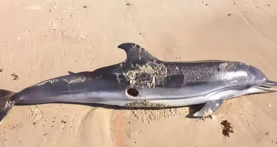(圖片說明:雪茄達摩鯊進攻大型動物後的畫面)
