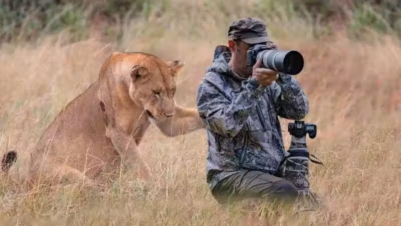 攝影師正專心拍攝,母獅卻從「背後」接近,原來它是在求救!
