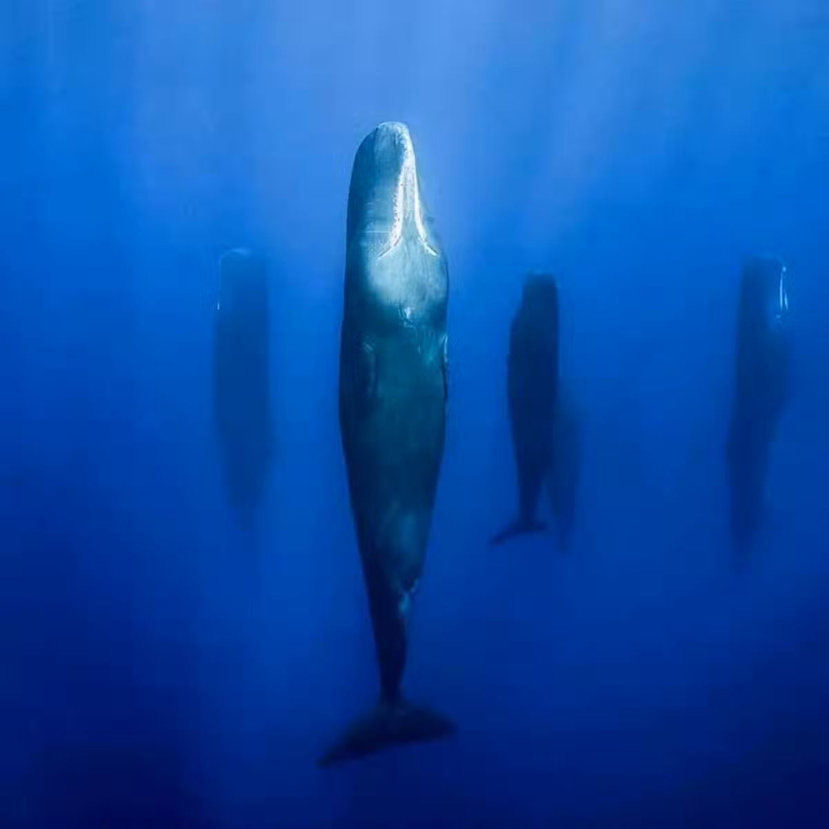 圖註:抹香鯨是這樣垂直睡覺的,它們吸一口氣可以睡2小時