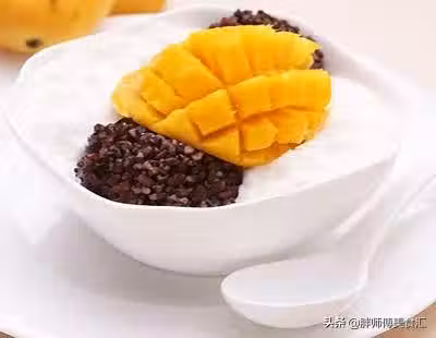 芒果1個、糯米(黑)300克、甜玉米(粒)50克、冰淇淋(芒果)80克、牛奶80克、淡奶油50克、白糖60克