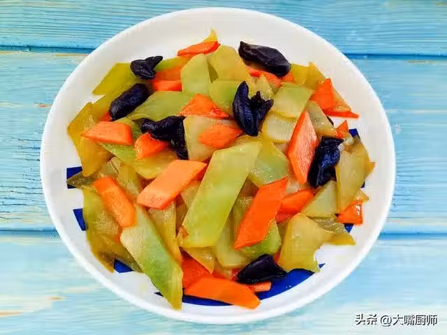 2、起鍋燒油,放入蔥姜爆香,倒入萵筍、胡蘿蔔,大火翻炒一會兒,斷生後倒入黑木耳,繼續炒一會兒。食材都炒熟後,加入適量食鹽、生抽、雞精,大火翻炒均勻,即可關火出鍋。