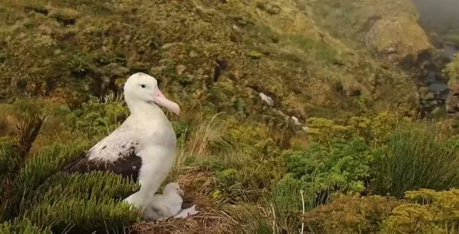 遺憾的是,信天翁雛鳥數萬年來沒有看到像老鼠這樣的東西,導致它獨自待在巢穴時,面對老鼠的進攻不知道如何應對,特別是在夜晚。因此RSPB的成員在2019年拍到有9隻老鼠潛入信天翁巢穴,慢悠悠的吃掉雛鳥的畫面。
