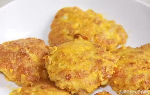 3、鍋放油燒至6成熱用湯勺或鍋鏟直接一勺一勺的按個放在鍋里用中小火煎,煎至金黃再換另一面,要感覺還沒熟可以反覆煎下的!然後裝盤即可!
