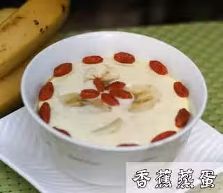 5. 取出後,將用開水泡開的枸杞粒放上去點綴一下,吃時攪開。