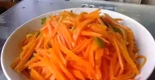 做法:胡蘿蔔切絲備用,鍋內放油,倒入胡蘿蔔絲,加適量鹽,翻炒幾分鐘,快好時放配料,然後炒熟即可。