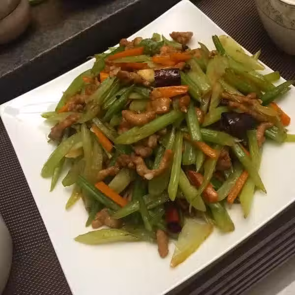 用料:山芹菜、豬肉、蔥、甜麵醬、醬油