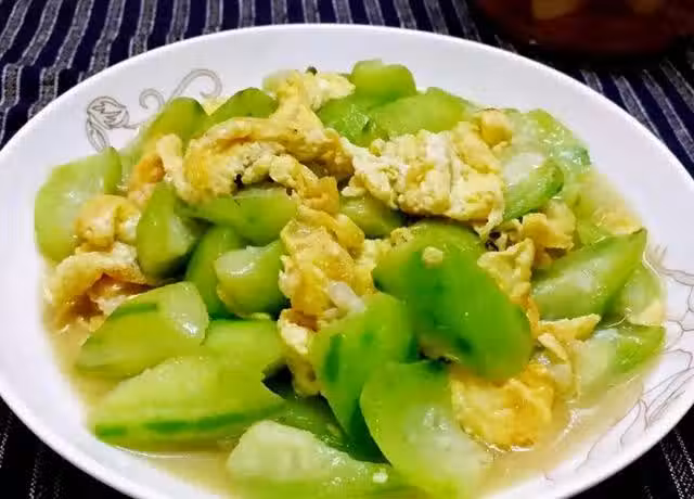 5.然後放入雞蛋一起,加一點鹽,加點水,然後放入雞精,即可盛出裝盤,一盤絲瓜炒雞蛋就完成啦