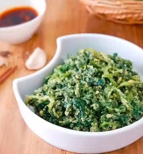 注意:要等蒸鍋水燒開後,再上鍋蒸。上鍋後要用大火蒸,停火後,不能長時辰焐,以防爛菜、粘結。