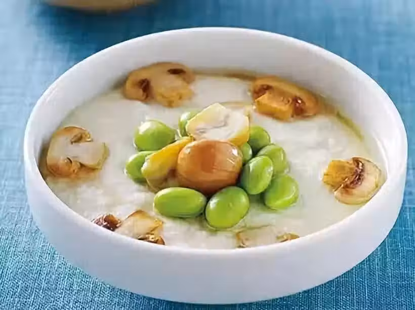 白木耳30克、栗子適量、板豆腐3塊、松茸菇100克、燙熟青豆仁20克