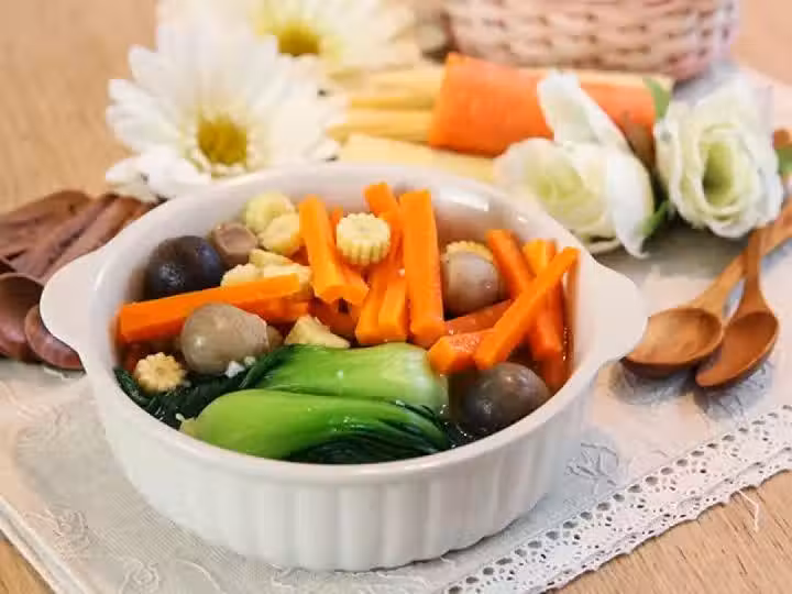 胡蘿蔔、小青菜、小玉米、鹽,味全高鮮,植物油,素高湯