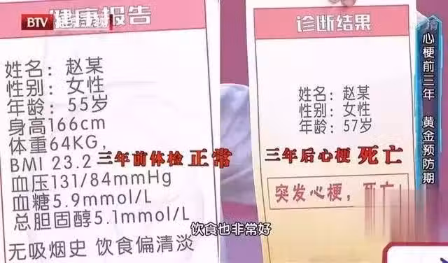 這兩位在三年前,體檢完全正常,沒有三高,也沒有不良嗜好。但三年後,卻突發心梗身亡。