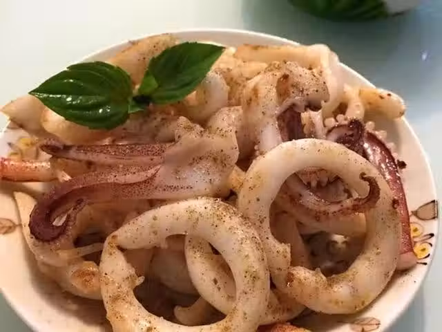 透抽(切成一圈一圈的)一尾、白鬍椒鹽適量、沙拉油一匙