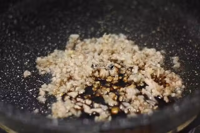 8把炒好的肉糜放在蛋羹上面,蒸1分鐘,讓雞蛋和肉末互相滲透一下,撒上蔥粒就可以上桌了。