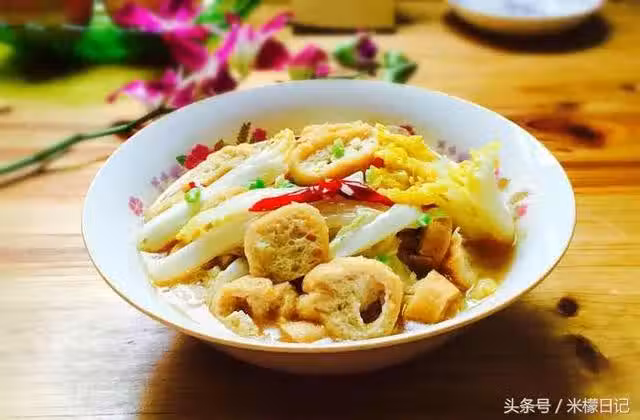 8. 油豆腐完全浸入湯汁之後,倒入備用的娃娃菜,放入適量鹽。