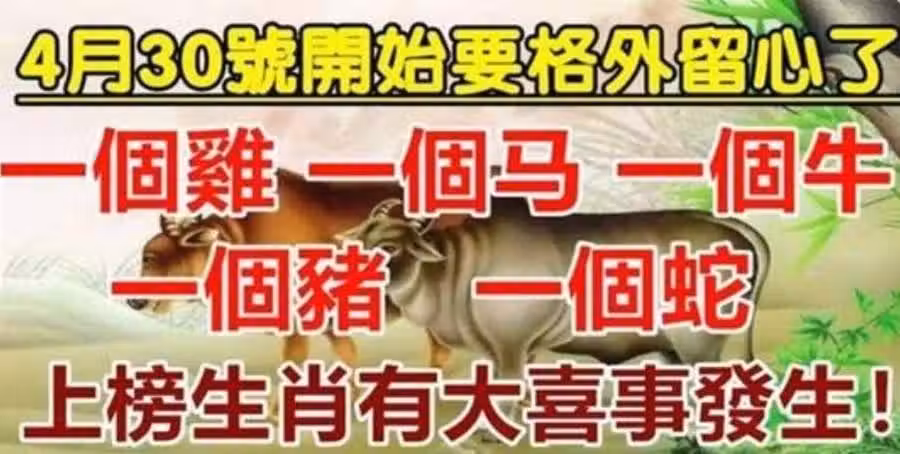 4月30號要格外留心了,一個雞,一個馬,一個牛,一個豬,一個蛇有大喜事