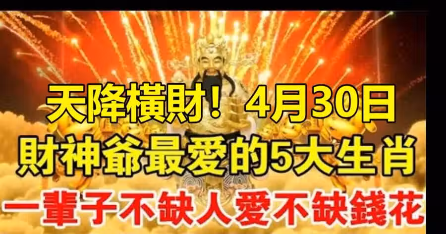 天降橫財!4月30日「發財發不停」 財神爺住家中不走的生肖!