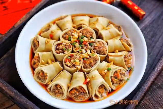 豆腐皮1張,牛肉100克,胡蘿蔔半根,澱粉2勺,料酒1小勺,雞蛋1個,鹽適量,胡椒粉2克,醬油2勺,蒜末適量,辣椒香蔥適量