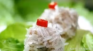 3、肉、藕、姜放一塊兒,加少許蛋清,料酒、白鬍椒粉、鹽、糖,還可加少許雞湯,朝同一方向攪拌5分鐘左右,肉餡上勁即可;手心沾點水,取適量肉餡,搓成肉丸,在糯米上滾一圈,均勻沾上糯米粒,放盤;肉丸大火蒸20分鐘即可。