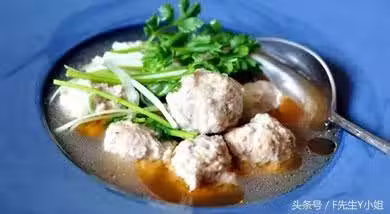 2、雞湯(或水)入鍋,冒熱氣尚未沸騰時,將肉泥擠成丸子,下入鍋中;轉中火,慢慢煮開,並不斷打去浮沫;待肉丸全部浮起後,再煮約10分鐘,至熟。
