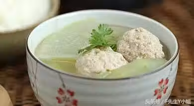 5、丸子都浮起來之後下入冬瓜片,煮幾分鐘。看冬瓜變成半透明後調入鹽、香油,家裡有雞粉的可以適當放一些。關火後撒些胡椒粉,切點香菜放入湯里,這就可以享用了。