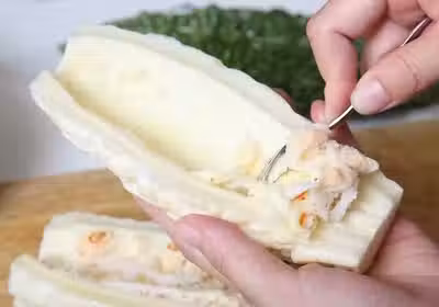 以湯匙將內薄膜的苦瓜粒完全刮除乾淨,部會那麼苦!