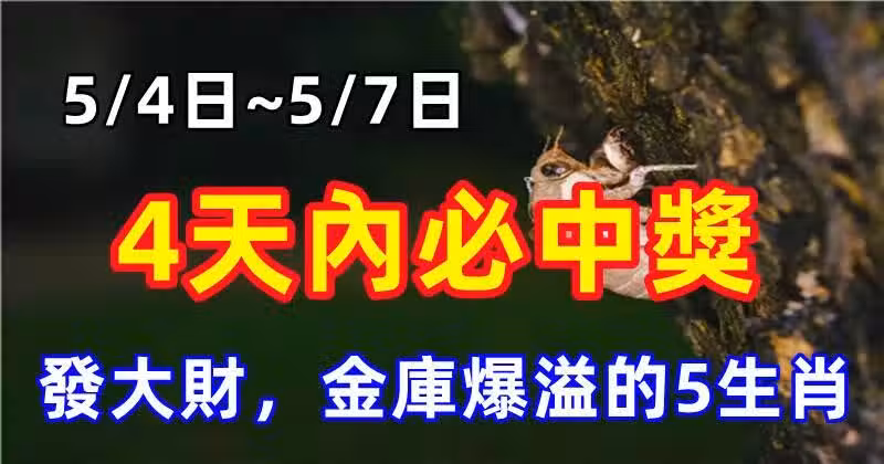 5/4日~5/7日財運飆漲,4天內必中獎發大財,金庫爆溢的5生肖
