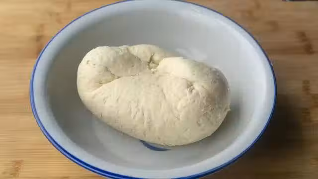 繼續揉面,這裡的揉面方法是用的戧面,就是一直加乾麵粉一直揉,直到把它揉成一個偏硬的光滑麵糰,要有耐心一點,像這種程度就差不多了;