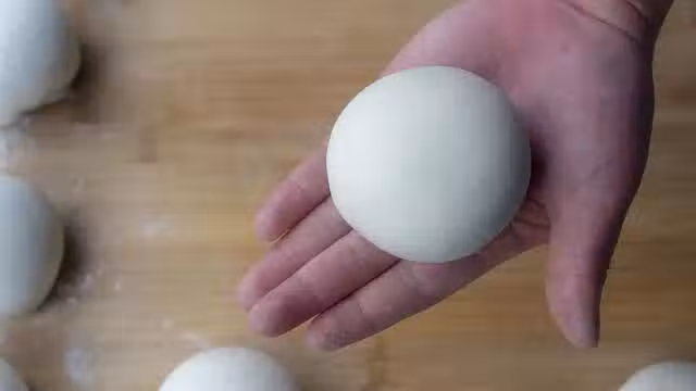 7、做好後不用蓋起來,讓表面風乾,這樣就可以做出能撕掉饅頭皮的老面饅頭了,生胚終於做好啦,全部做好後留一個麵糰自然風乾當做面肥,下一次發麵直接用溫水化開就可以了;