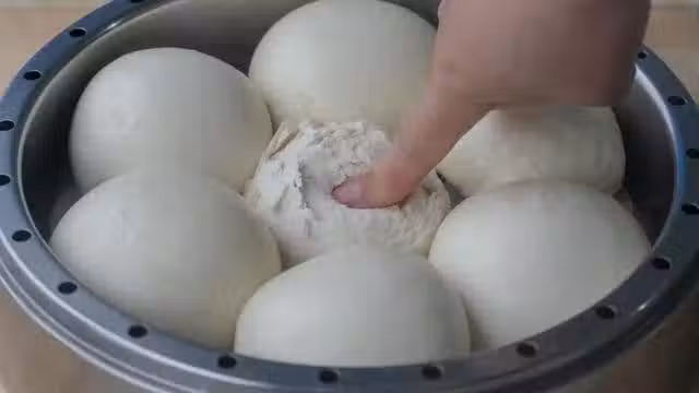 8、現在把麵糰兒放入蒸籠中讓它醒發起來,醒發好後開始蒸,冷水上鍋,上汽後大火蒸15分鐘,關火燜5分鐘避免塌陷,老面饅頭就可以出鍋啦!