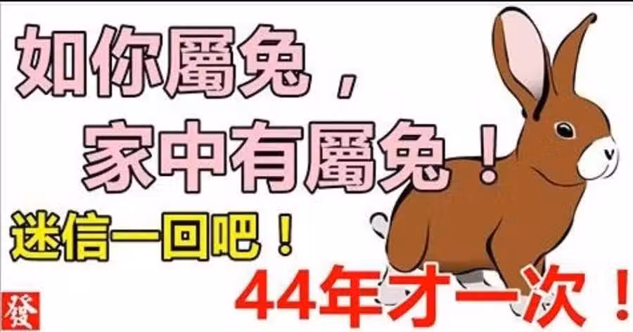 如果你不屬兔,你最愛的人屬兔,或家中有屬兔,44年才一次!迷信一回吧!