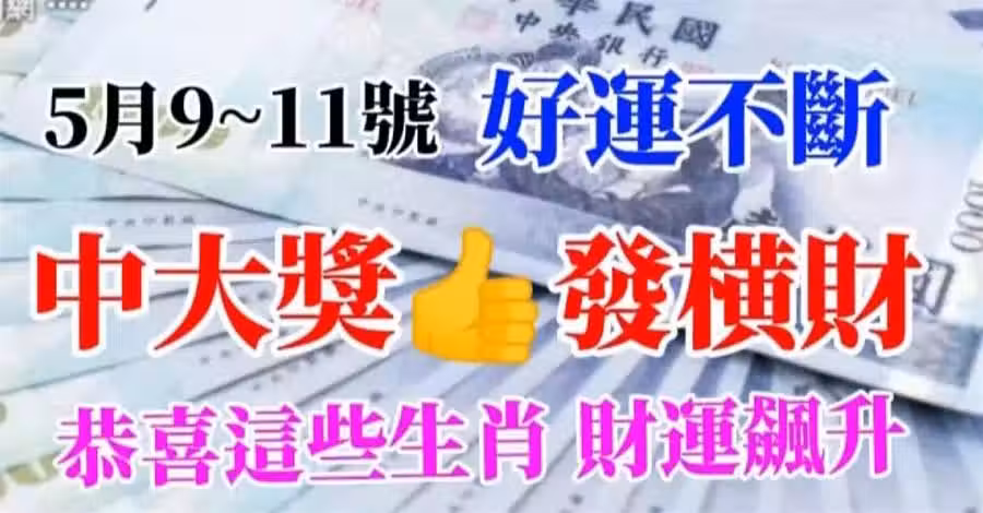 5月9~11號好運不斷,財運飆升的生肖 ,必中大獎發橫財