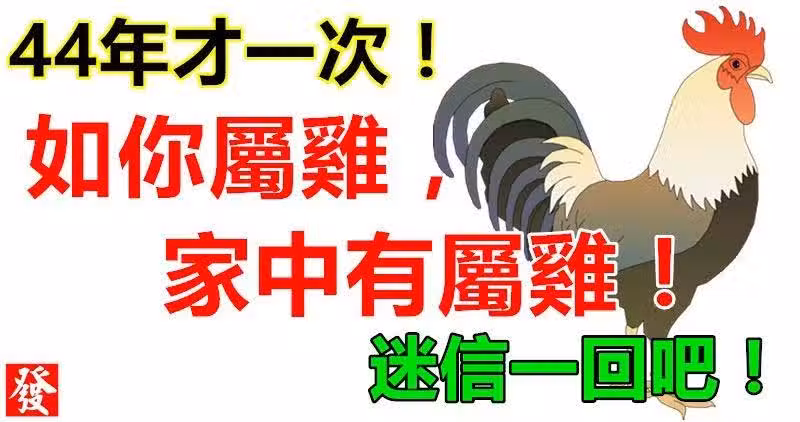 如果你不屬雞,你最愛的人屬雞,或家中有屬雞,44年才一次!迷信一回吧!