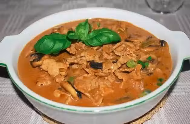 豬裡脊肉、蘑菇、洋蔥、蔥。