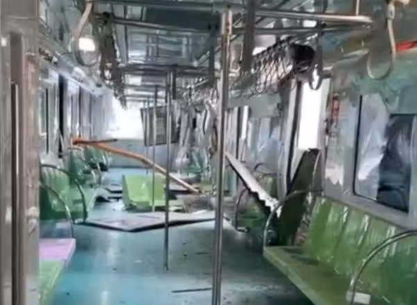 台中捷運列車今(10日)驚傳遭施工鐵架插入車廂,據悉是豐樂站旁有路邊施工鐵架倒塌,恰巧插入行駛中的台中捷運車廂,目前傷者增至8人,而1人當場喪命,而事發當時的車廂內部畫面也曝光。