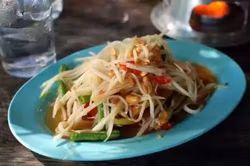 主輔料:青木瓜、蕃茄、熟花生碎、魚露、檸檬汁、綿白糖、鹽、蒜瓣